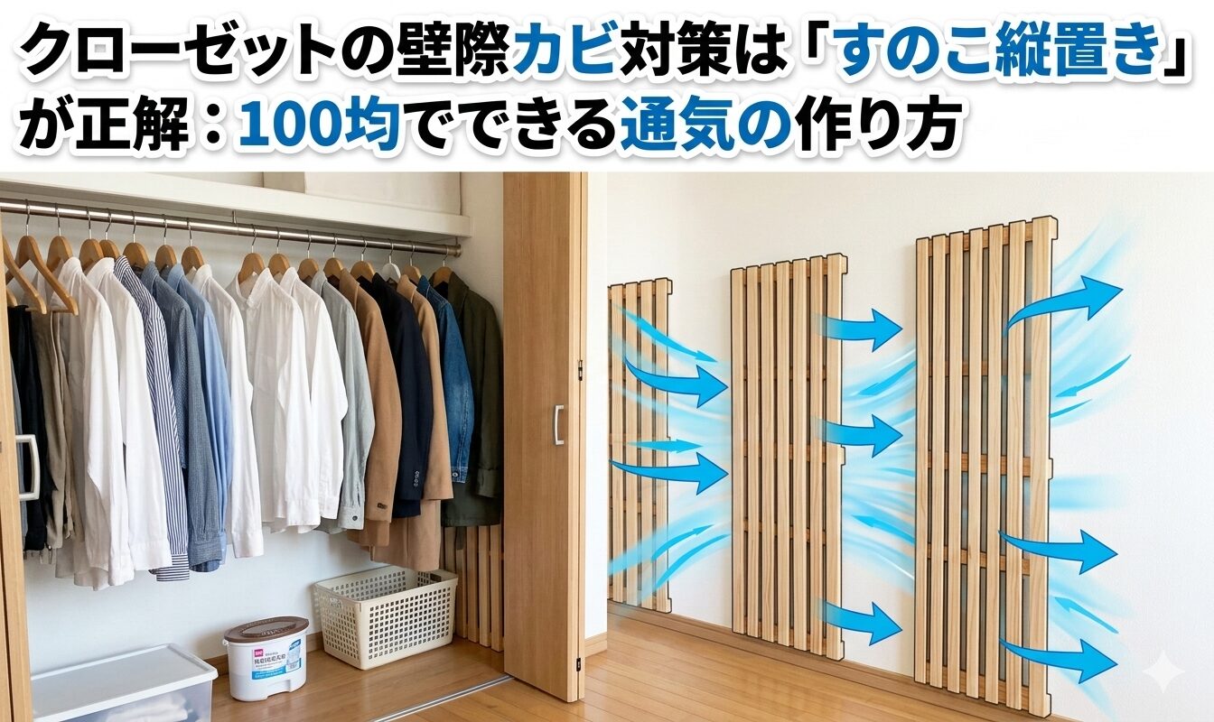 クローゼット 湿気対策 すのこ 縦置きは、難しい道具を増やさずに「空気の導線」を作るやり方です。